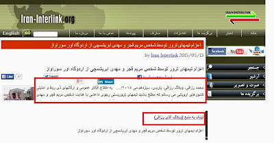 ايران اينترلينك درتاريخ 13 مي 2015 برابر با 23 ارديبهشت 94 مطلبي به نام “اعزام تیمهای ترور توسط شخص مریم قجر و مهدی ابریشمچی از اردوگاه اور سوراواز-محمد رزاقی، وبلاگ رزاقی، پاریس، سیزدهم می ۲۰۱۵:… به اطلاع افکار عمومی و ارگانهای ذی ربط و امنیتی........“درج كرده است .